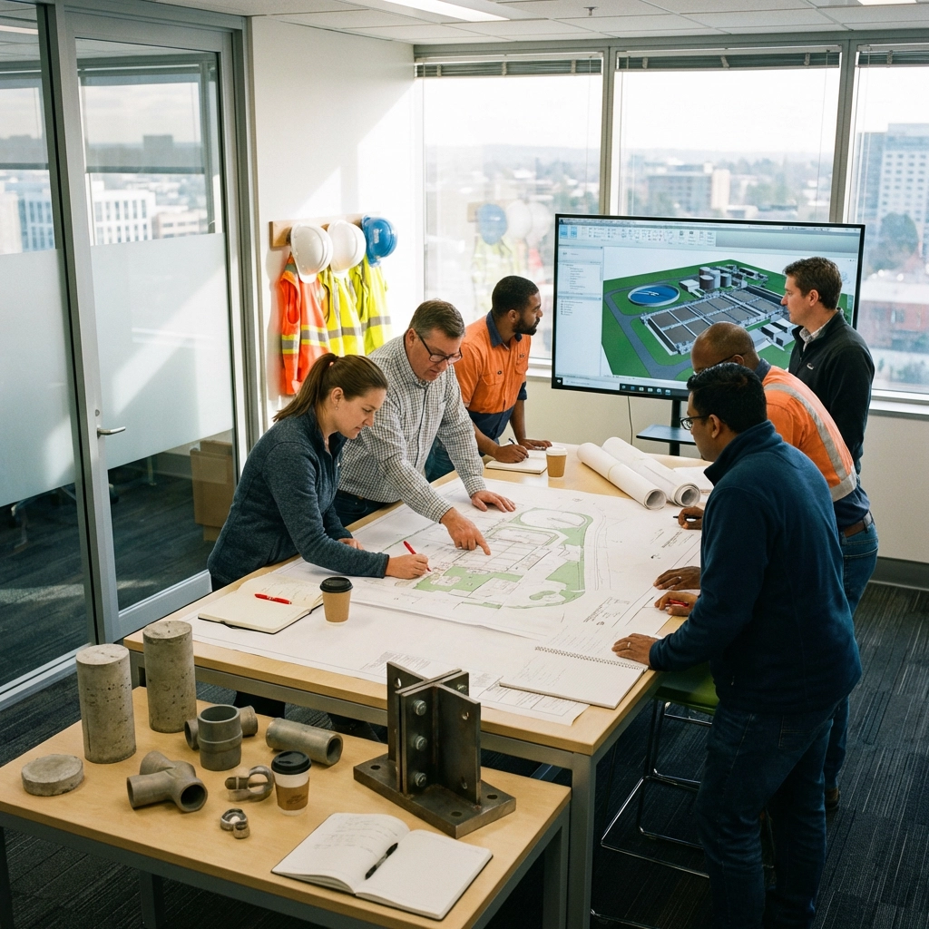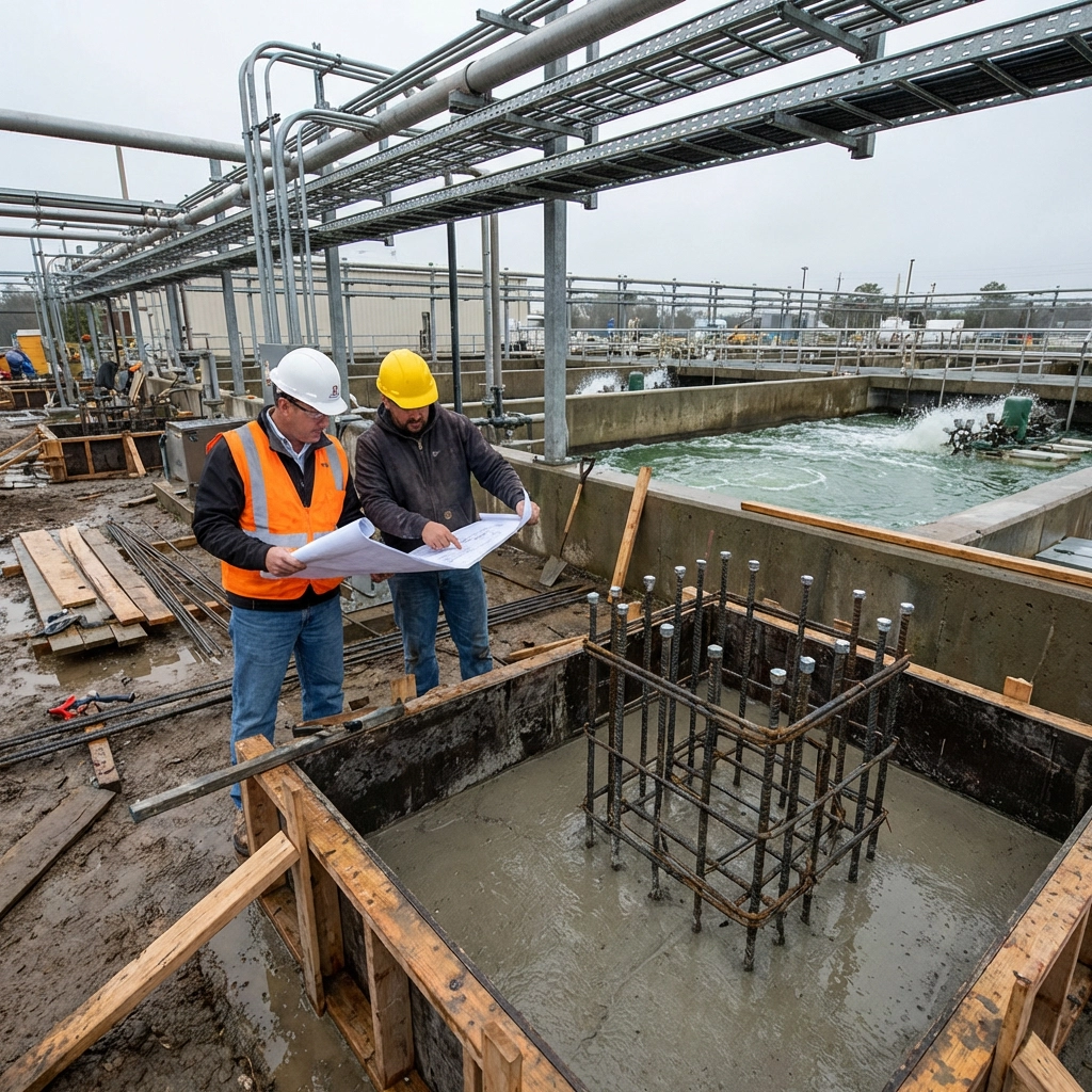 Active treatment facilities demand precise coordination—maintaining operations, safety, and regulatory compliance while executing upgrades, new structures, and tie-ins. We deliver treatment plant construction including process structures, structural concrete, piping, equipment foundations, and civil work. Our engineering-driven approach addresses operational constraints, temporary systems requirements, and owner coordination needed to reduce risk, minimize disruptions, and execute safely within sensitive treatment environments.
